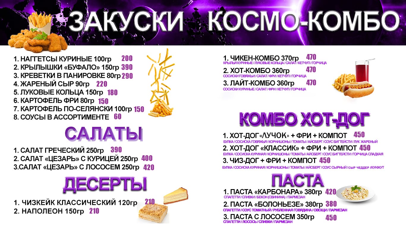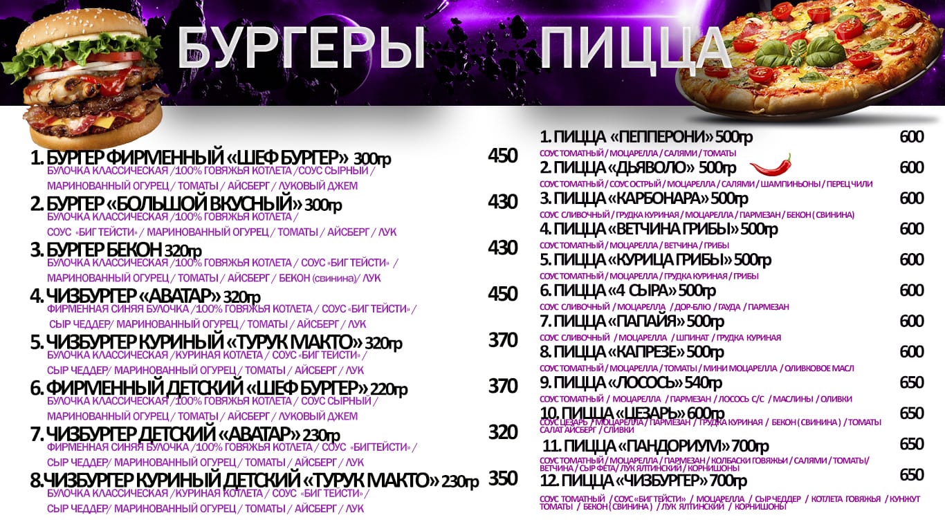 Меню:
